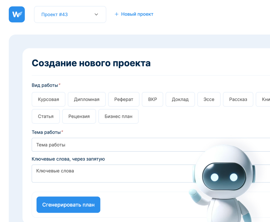 Генерируй содержание, редактируй структуру текста. Зарегистрируйся и сгенерируй полный текст!